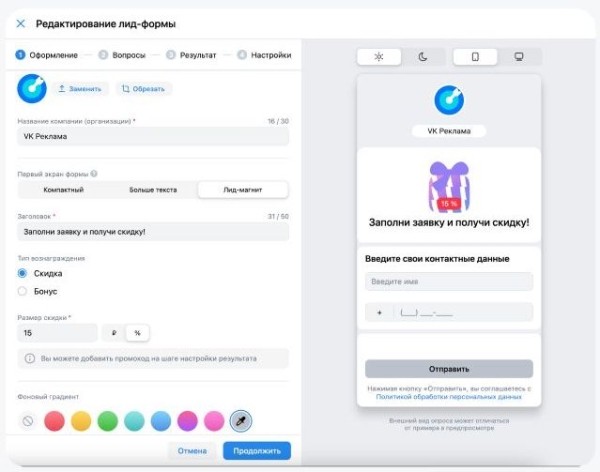 В VK Рекламе появились кастомные лид-формы
